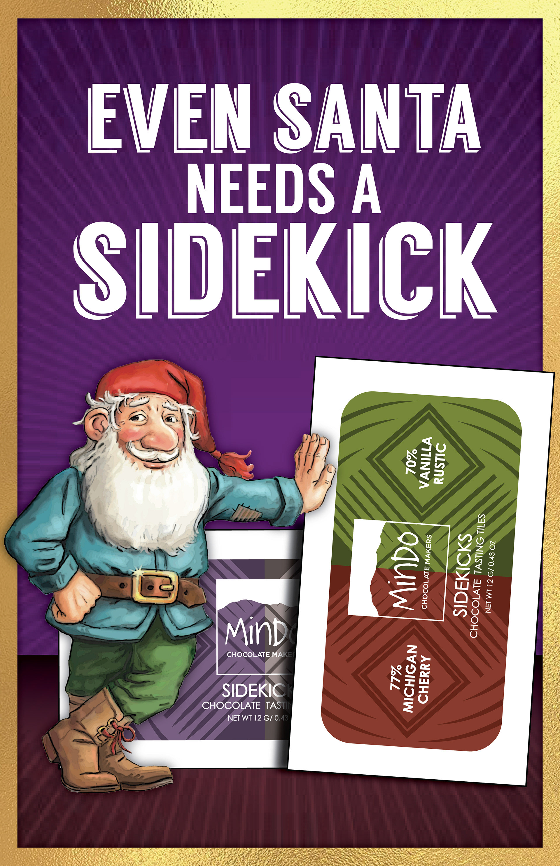 Sidekicks - A product I developed for Mindo Chocolate Makers. A craft chocolate maker in Dexter. They wanted a way to market their tasting squares as a cost-effective introduction to their chocolate bars.